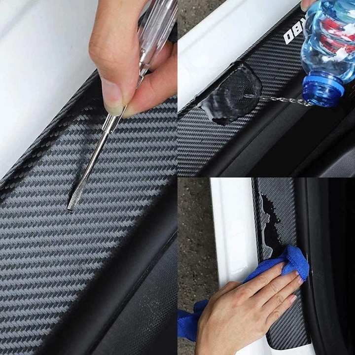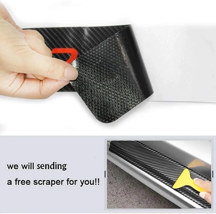 The sill protector is easy to stick and won't leave wrinkles or bubbles. Just clean and dry the car, then glue the protective strips in place and finally smooth them out with the scraper.
