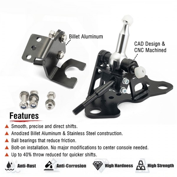 Πραγματική Γεωμετρία: Σε αντίθεση με έναν απλό "κομμένο" επιλογέα, ο δικός μας Short Shifter μειώνει τη γωνία και την απόσταση αλλαγής χωρίς να δυσκολεύει το κούμπωμα των ταχυτήτων.