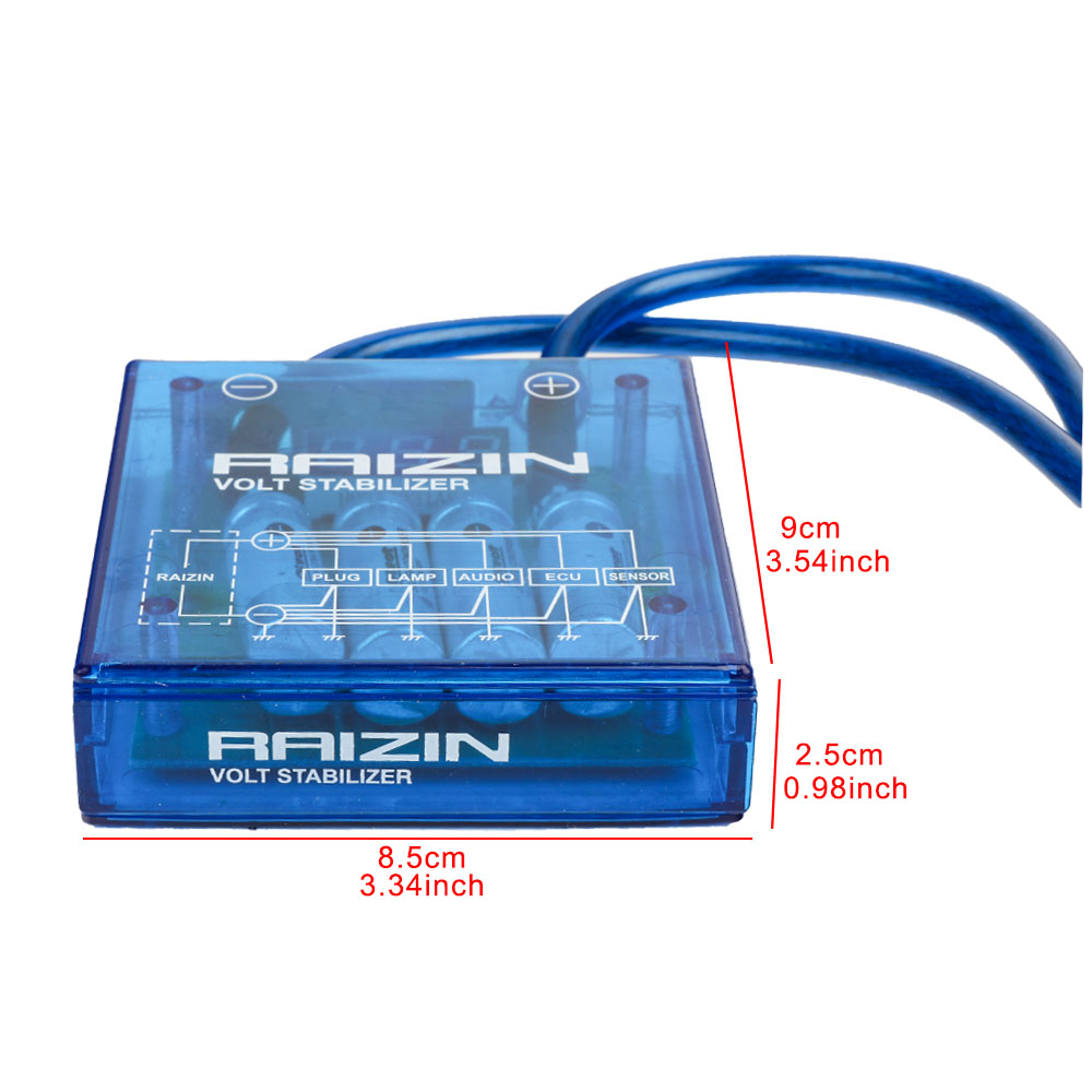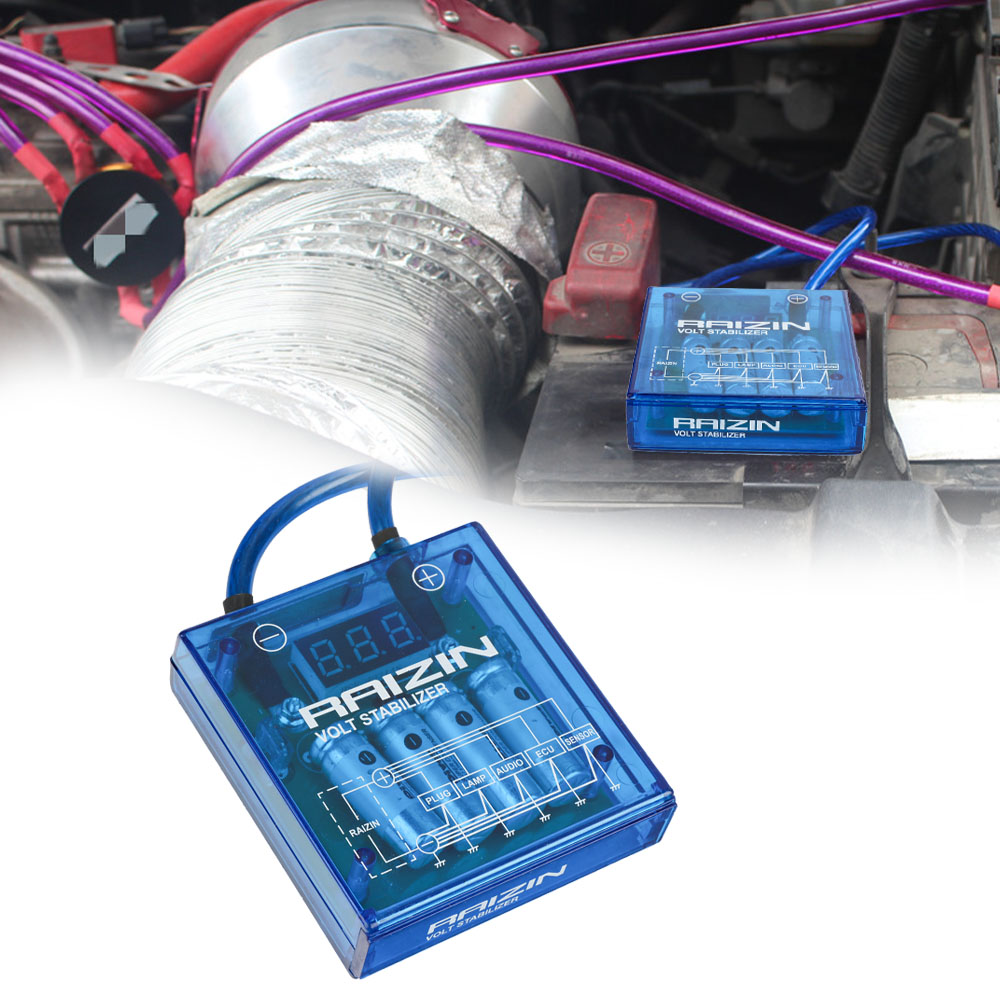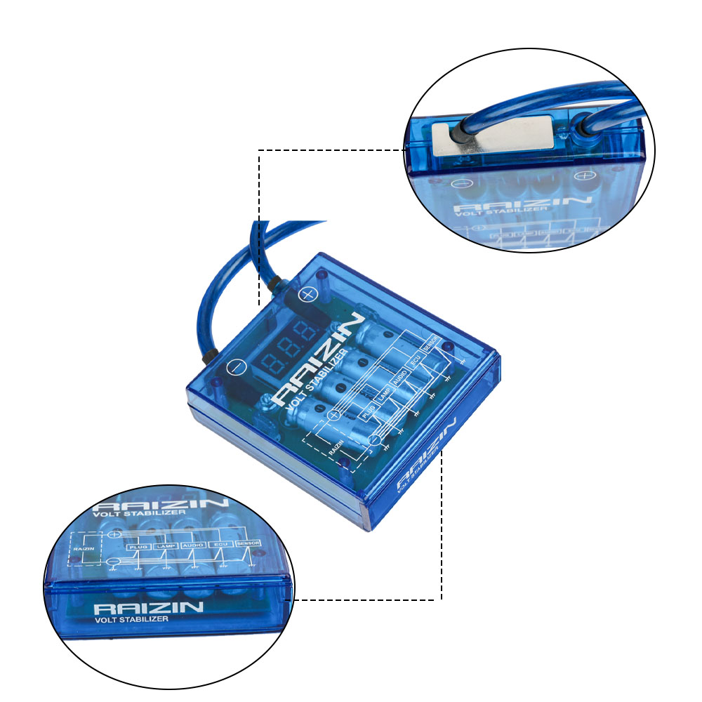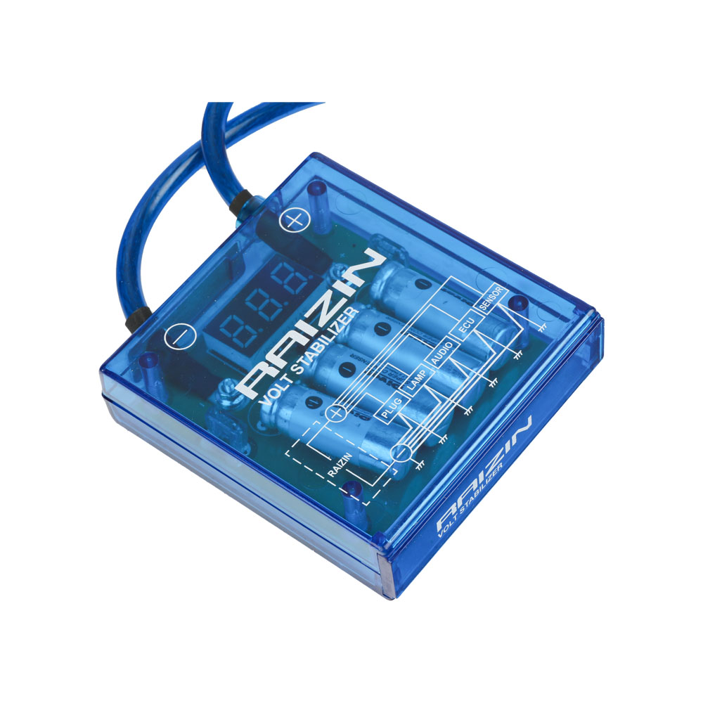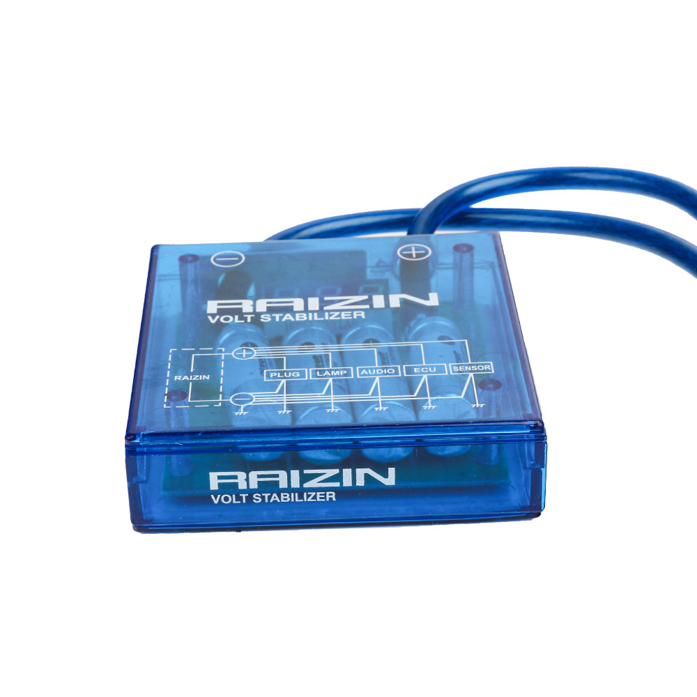 Ο Σταθεροποιητής Τάσης Raizin Blue με 3 καλώδια γείωσης συνδέεται στον αρνητικό και θετικό πόλο της μπαταρίας και σταθεροποιεί το βολτάζ του αυτοκινήτου.