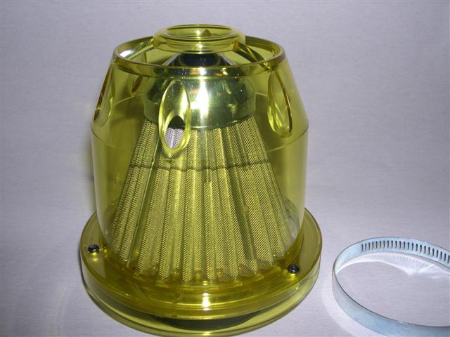 Η χοάνη αυτή είναι από ανοξείδωτο ατσάλι, με κίτρινο διαφανές καπάκι και μόνο σε 77 διάμετρο.